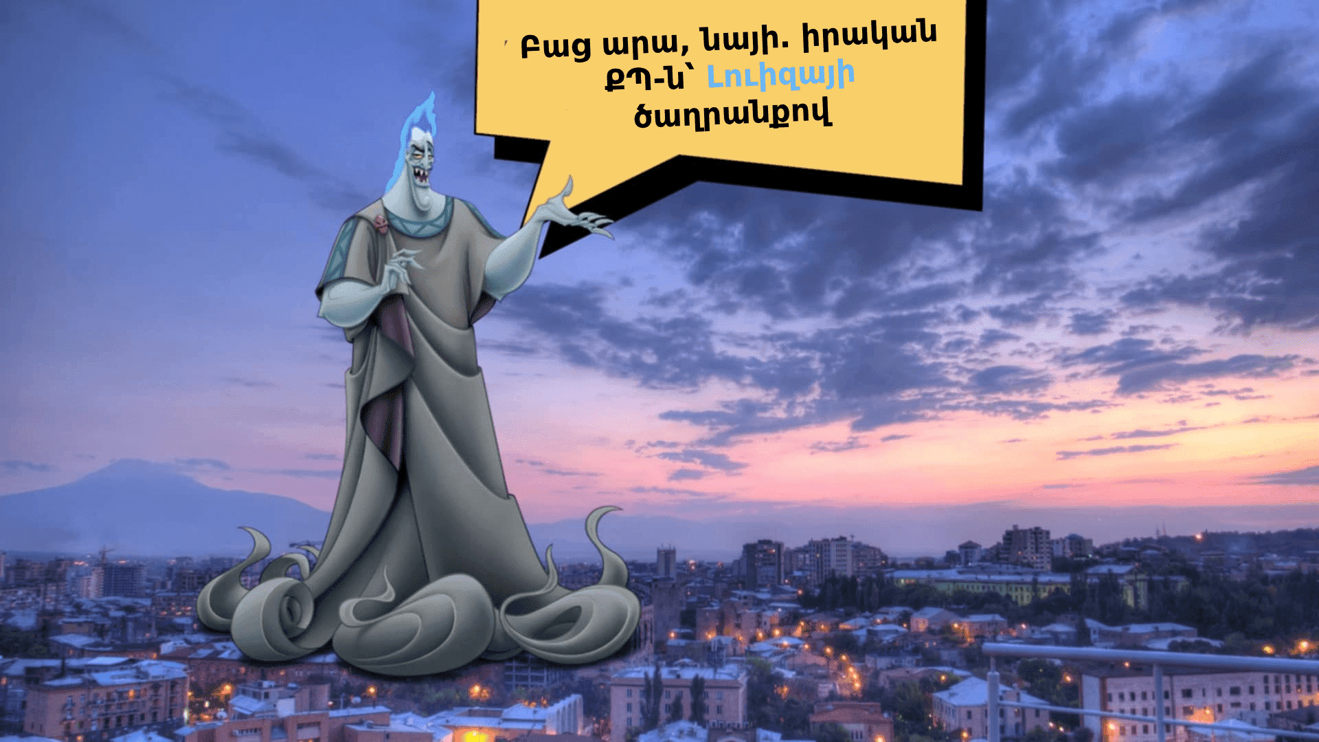 Նկարում Հերկուլես մուլտֆիլմի Հադեսն է, մեր դեպքում Նիկոլ Փաշինայնը, որն իր փոքրիկ չարքերին՝ պատգամավորներին հրահանգներ է տալիս։